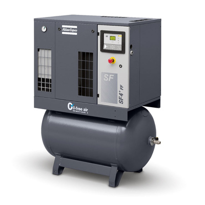 Безмасляные спиральные компрессоры Atlas Copco SF обеспечивают 100% чистый сжатый воздух без примесей масла в таких важных сферах как: научно-исследовательские лаборатории, больницы, стоматологические клиники и предприятия питания. Эти компрессоры соответствуют требованиями ISO 8573-1 Класс 0, они просты в эксплуатации и обслуживании и занимают минимум места, экономя пространство на вашем предприятии. Компрессоры серии SF исключают риск загрязнения маслами. Стоимость версии SKID ощутимо ниже. Такой компрессор имеет максимальную производительность до 0,79 м3/мин при давлении 8 бар. Компрессоры оснащены манометром, кнопкой пуска/останова. Опционально модуль управления (контроллер) не доступен для данной серии. Все компрессоры версии SKID могут быть выполнены без ресивера и на ресивере.